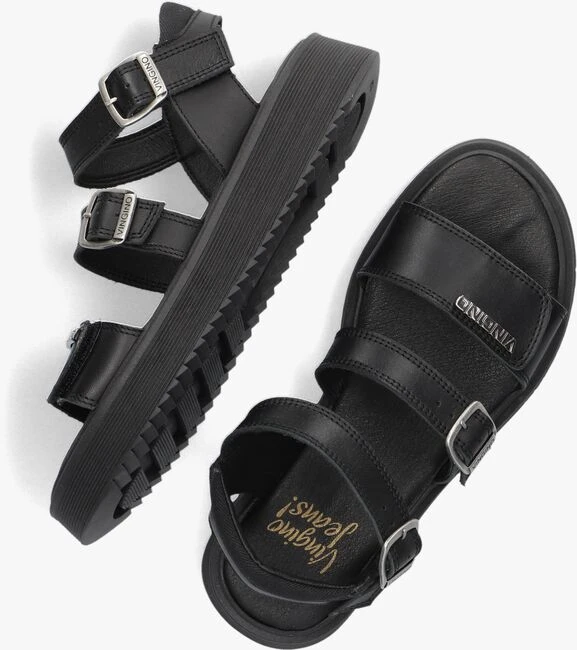 Voor de stoere, modebewuste jonge meiden heeft VINGINO deze sandaal ANA ontworpen. De buitenkant is gemaakt van zwart, zacht leer met drie bandjes over de wreef, waarvan één gemakkelijk te openen en sluiten is met een klitten band sluiting en de andere twee met een gespsluiting. Een opvallend detail is het zilverkleurige merkplaatje op het bandje op de voorvoet. Door middel van de dubbele. De suède voering en het licht voorgevormde voetbed bieden samen met het hielkussentje veel comfort aan de voeten. Met de zwarte rubberen loopzool met gripvast profiel heeft je kindje altijd een goede grip heeft. Waar doe jij hem naartoe aan